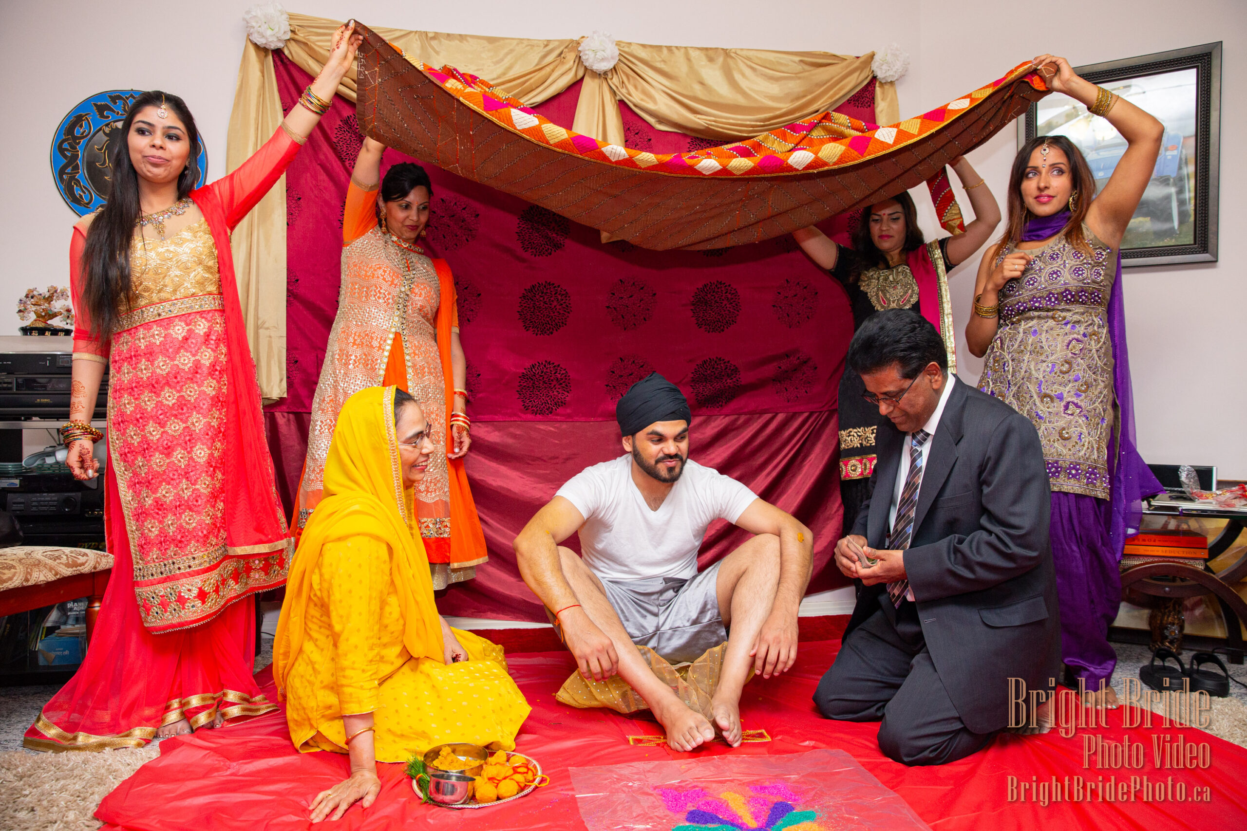 The Haldi ceremony is a significant pre-wedding ritual in East Indian weddings. It involves applying a paste made from turmeric, sandalwood, and other ingredients to the bride and groom’s skin. This ceremony is usually held separately at the respective homes of the bride and groom on the morning of the wedding day or a day before. The turmeric paste is believed to bless the couple with glowing skin and protect them from evil spirits. Family members and close friends partake in the joyful event, applying the paste amidst songs, laughter, and well-wishes. The Haldi ceremony not only purifies and beautifies but also symbolizes the start of a new journey for the couple.